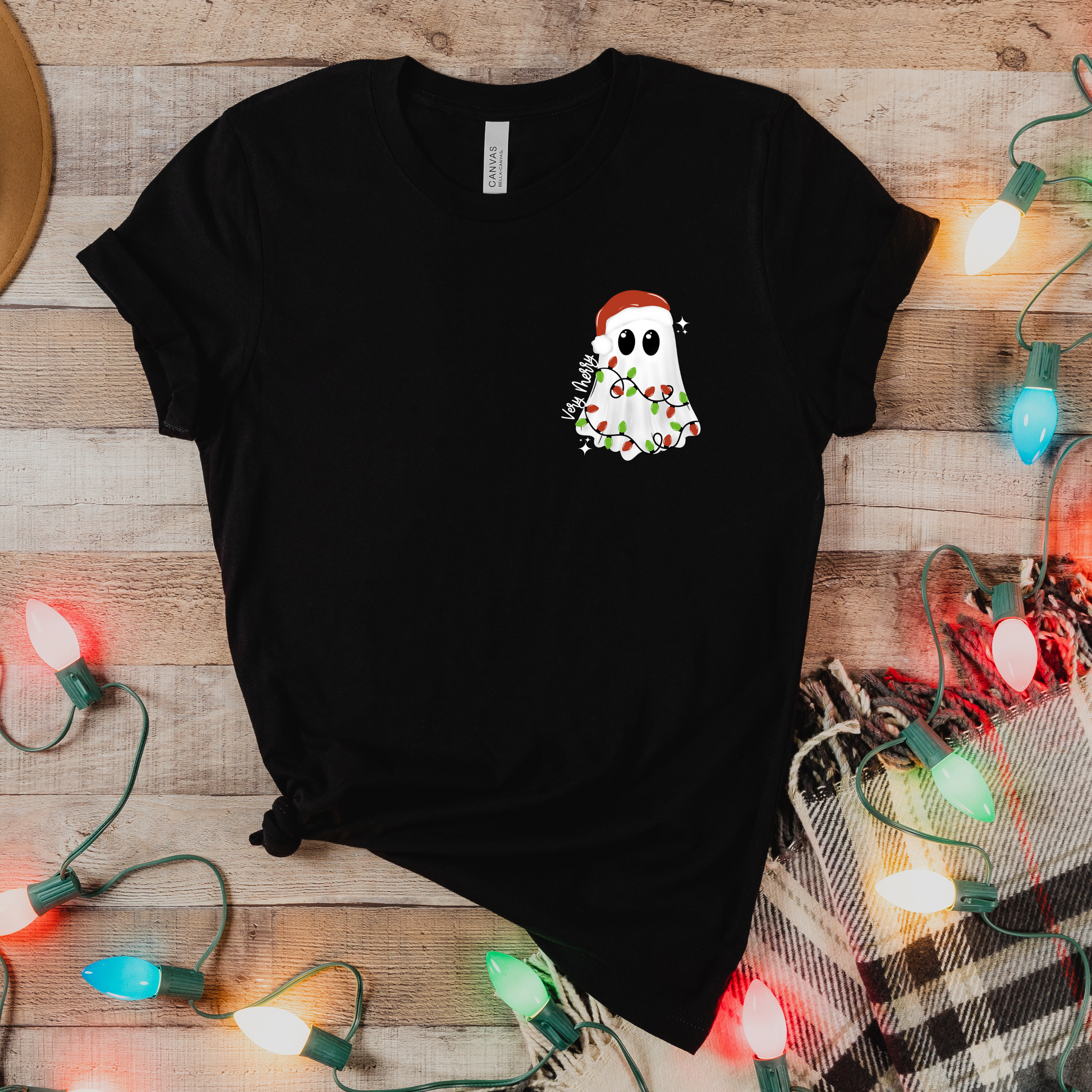 Boo-tifully spooky meets festive cheer! This adorable Christmas Ghost tee features a cute pocket-sized design that's perfect for holiday fun. Crafted from a soft poly-cotton blend, it's comfortable enough for all-day wear while maintaining its shape and color. The unisex fit works for everyone, making it an ideal gift or personal pick for spreading seasonal spirit. Whether you're trick-or-treating through December or just embracing the quirky side of the holidays, this black tee is your go-to for cozy, playful style.